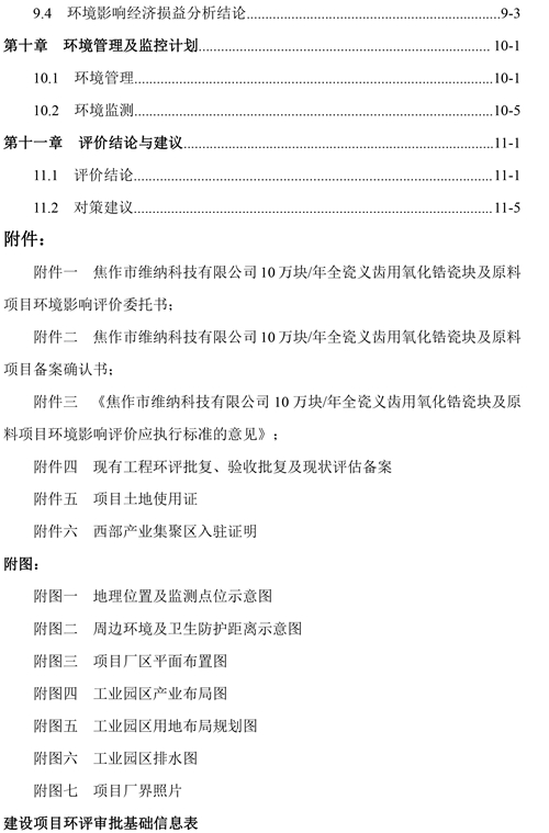 關(guān)于焦作市維納科技有限公司10萬(wàn)塊/年全瓷義齒用氧化鋯瓷塊及原料項(xiàng)目環(huán)評(píng)報(bào)告書(shū)信息公司